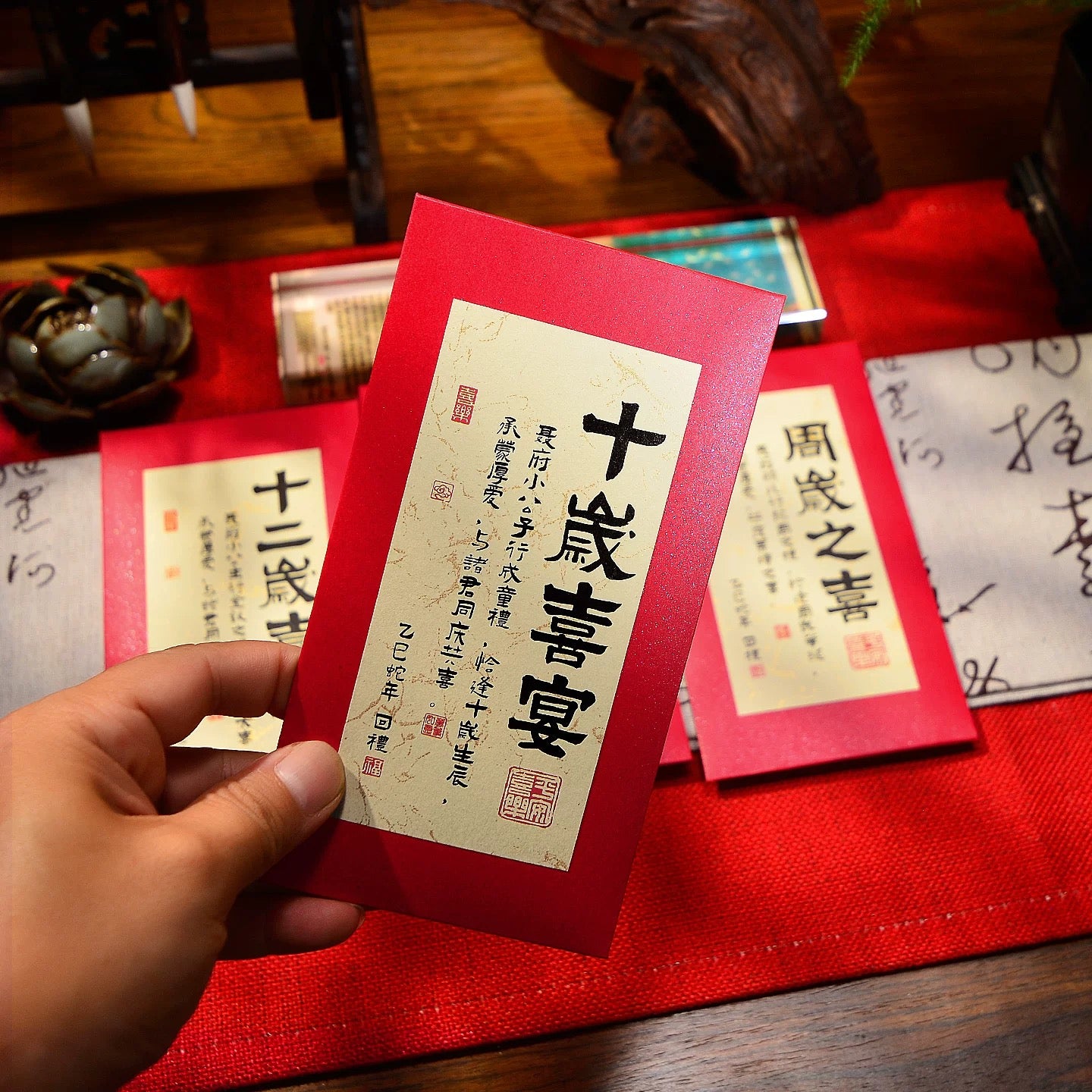 Customized 50pcs Chinese Calligraphy Surname Name Red Envelope Lucky Money Gift Packet for New Year | Wedding | Party | Events
