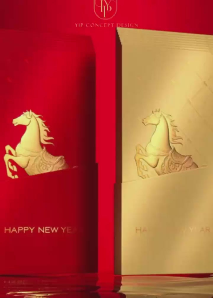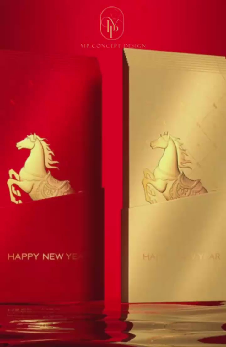 Year of the Horse Red Envelopes: Gold Foil Lucky Money Gift (Pack of 8pcs) can be customized (Add Logo & Text)