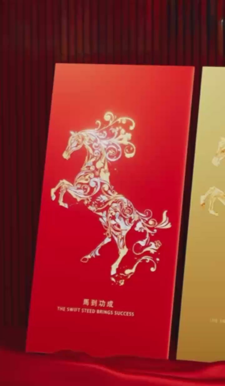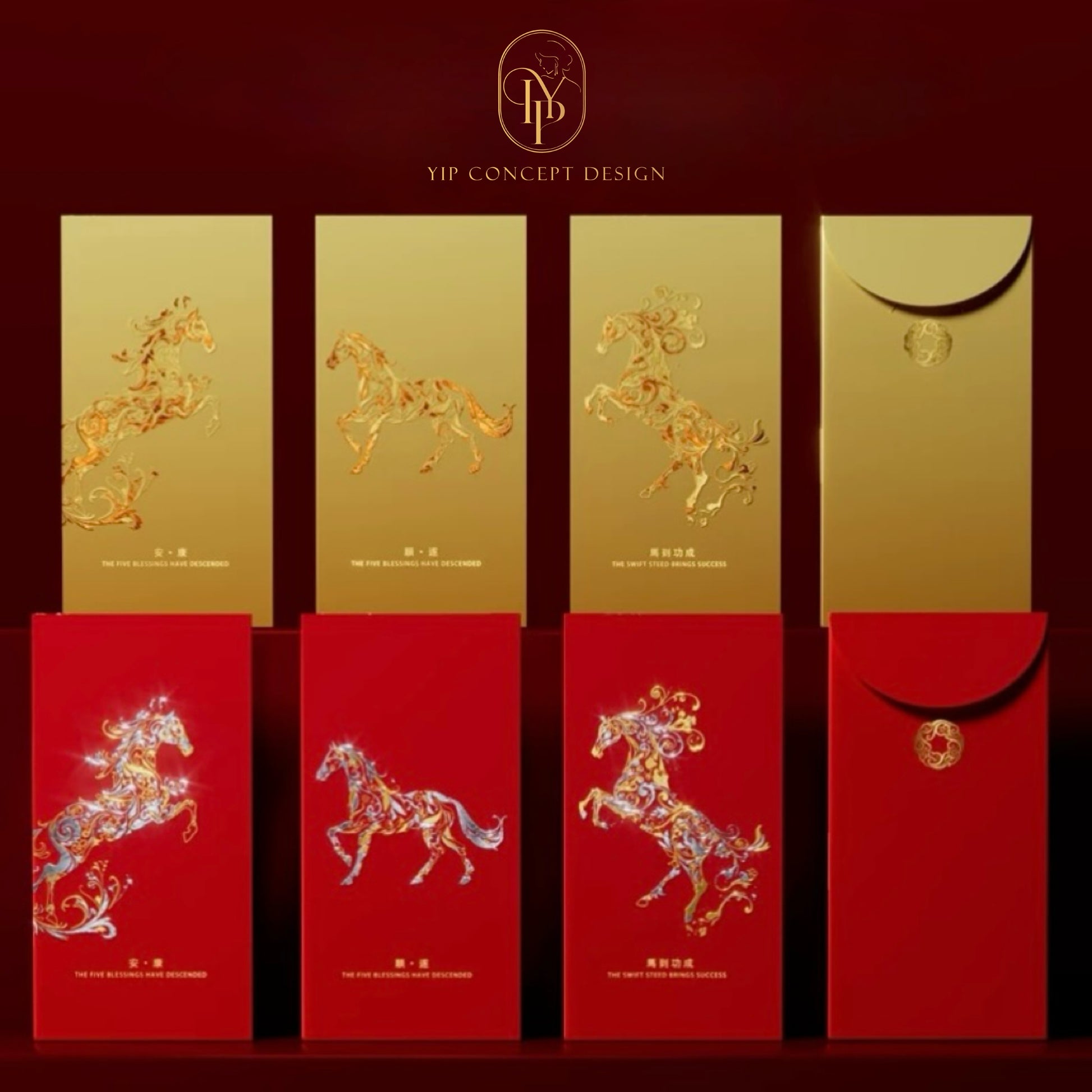 Custom (Add Logo & Text) High-end 20 Boxes Embossed Gold Foil Red Envelope: ้ฆฌๅนด็ฎ็ Chinese New Year of the Horse Lucky Money Packets