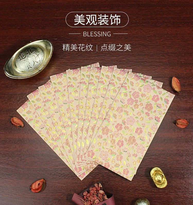 Pack of 20pcs Embossed Gold Foil Blossom Red Envelopes for New Year | Wedding | Bless | Moving Lucky Money Gift Packet