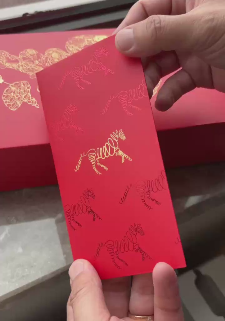 Year of the Horse Red Envelopes: Gold Foil Lucky Money Gift (Pack of 8pcs) can be customized (Add Logo & Text)